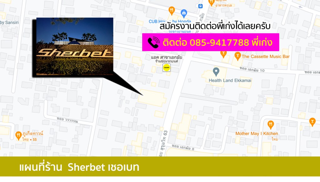 Sherbet Club Bangkok Ekamai-Sukhumvit Bangkok nightlife for gentlemen Located in the heart of Bangkok Economic area in Sukhumvit area It is a popular club with many foreigners, Koreans, Singaporeans, and Chinese visiting the club. which is said to be an exclusive pub Big luxury in Bangkok with pub zone, live music and karaoke room. There is a beautiful girl coyote And more than 100 entertainment girls every night ready to entertain and have fun at Sherbet